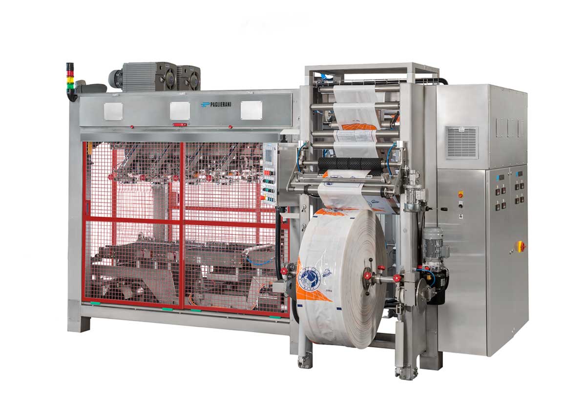 La prima e la sola al mondo confezionatrice Form Fill & Seal con due bocche di insacco.
